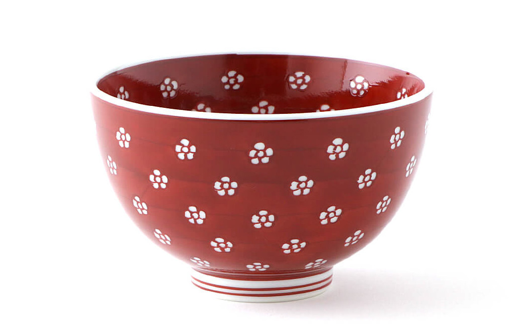 【源右衛門窯】有田焼/赤絵・染付梅地紋飯碗2客