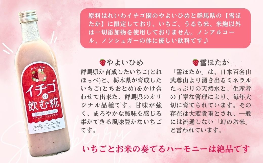 - 【贈答用】いちごの甘酒 「イチゴの飲む糀」 500ml×3本 | いちご 甘酒 あまざけ 米麴 こうじ やよいひめ 飲料 群馬県産 群馬県 前橋市