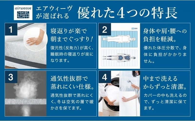 エアウィーヴ ベッドマットレス S01 ダブル | エアウィーヴ 創業のまち幸田町 マットレス ベット 高反発 洗える ウォッシャブル 敷き布団 敷布団 睡眠 快眠 寝具 エアウィーブ エアリーブ airweave 正規品 純正品 日本製