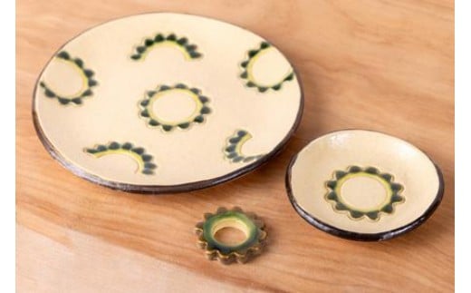 ゴーヤーの3点食器セット(丸)|食器 やちむん 皿 箸置き 沖縄県 豊見城市(DD024)