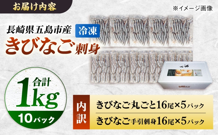 朝獲れきびなご刺身セット(きびなご丸ごと16尾パック×5、きびなご手引刺身16尾パック×5) 五島市/有限会社心誠 [PCG018]