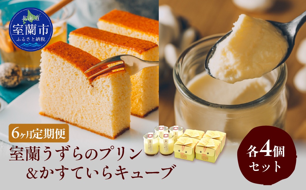 - ≪6ヶ月定期便≫室蘭うずらのプリン4個&かすていらキューブ4個 MROF013
