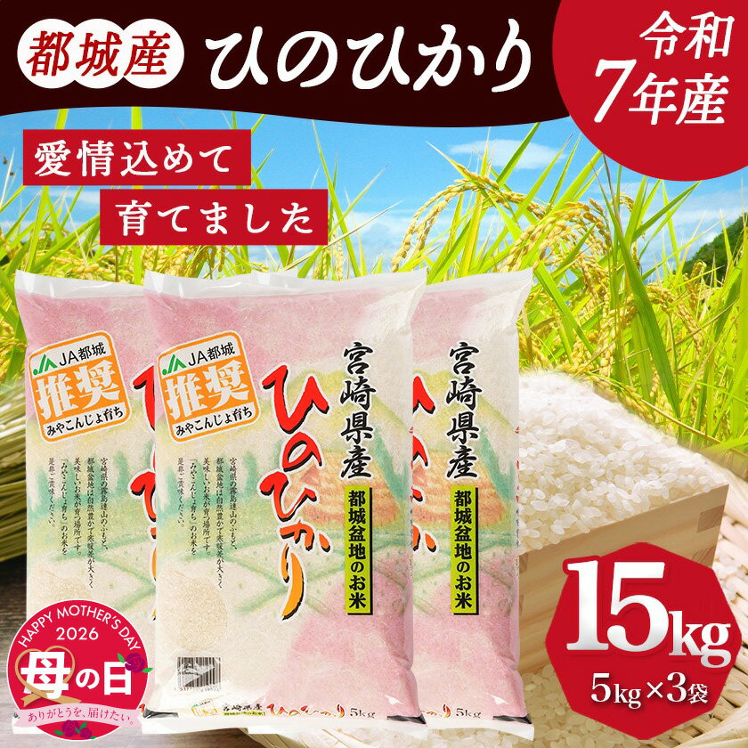 【ふるさと納税】【母の日】都城産ひのひかり15kg(5kg×3袋)≪5月7日〜10日お届け≫ - お米 15kg 精米 ヒノヒカリ 15キロ 5kg×3袋 単一原料米 冷めても美味しい 母の日 ギフト プレゼント 贈答用 送料無料 AF-1506-MG【宮崎県都城市は2年連続ふるさと納税日本一!】