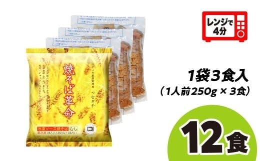 レンジで4分! 焼そば革命 3食入×4袋 12食セット | やきそば レンチン 冷凍食品 焼きそば 麺 ソース焼きそば 国産野菜 国産豚 簡単調理 話題 テレビ紹介 マツコ サタプラ 番組 ランキング 冷凍焼きそば部門1位 チン レンジ テレビ モチモチ もちもち もっちり 野菜 冷凍 美味しい 簡単 リピート 家族 具材 お昼 夜食 冷凍庫 肉 キャベツ 常備食 つむぎや 埼玉県 久喜市