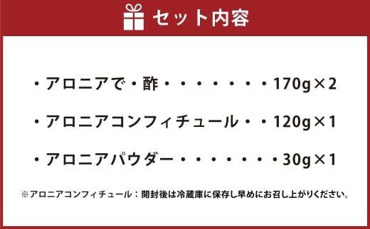 アロニア 3種詰合せ【アロニアで・酢×2、アロニアコンフィチュール×1、アロニアパウダー×1】 アロニア 酢 ジャム 粉 国産