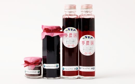 - アロニア 3種詰合せ【アロニアで・酢×2、アロニアコンフィチュール×1、アロニアパウダー×1】 アロニア 酢 ジャム 粉 国産