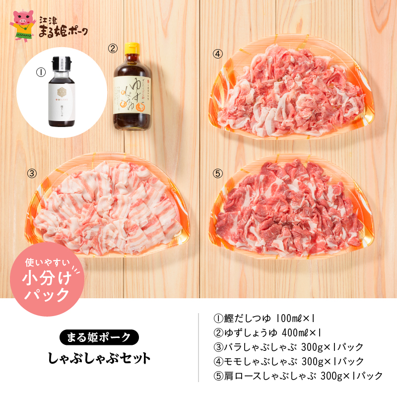 まる姫ポーク しゃぶしゃぶセット(肩ロース・バラ・モモ・ゆずしょうゆ・かつおだしつゆ)【AK-3】|送料無料 国産 まる姫ポーク 豚肉 ぶた肉 ぶたにく 肉 バラ モモ 肩ロース しゃぶしゃぶ かつおだしつゆ ゆずしょうゆ 江津市|