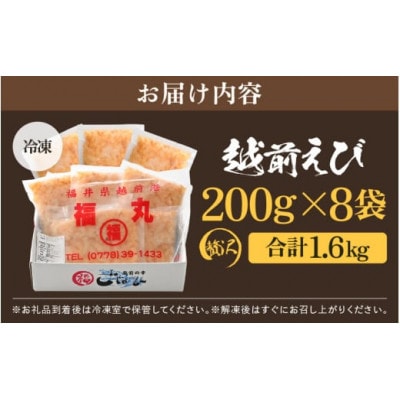 - 殻むき不要!幻と呼ばれる「越前えび」むき身 1.6kg(200g × 8袋)背わた処理済【配送不可地域:離島】【1626357】