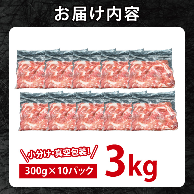 国産豚肉 こま切れ 300g×10p (3kg) 【2026年9月発送予定】【 小分け ・ 真空パック 】 ( 茨城県共通返礼品・茨城県産 ) ブランド豚 ローズポーク 茨城 国産 切り落とし 豚 豚肉 豚こま 豚こま切れ 冷凍