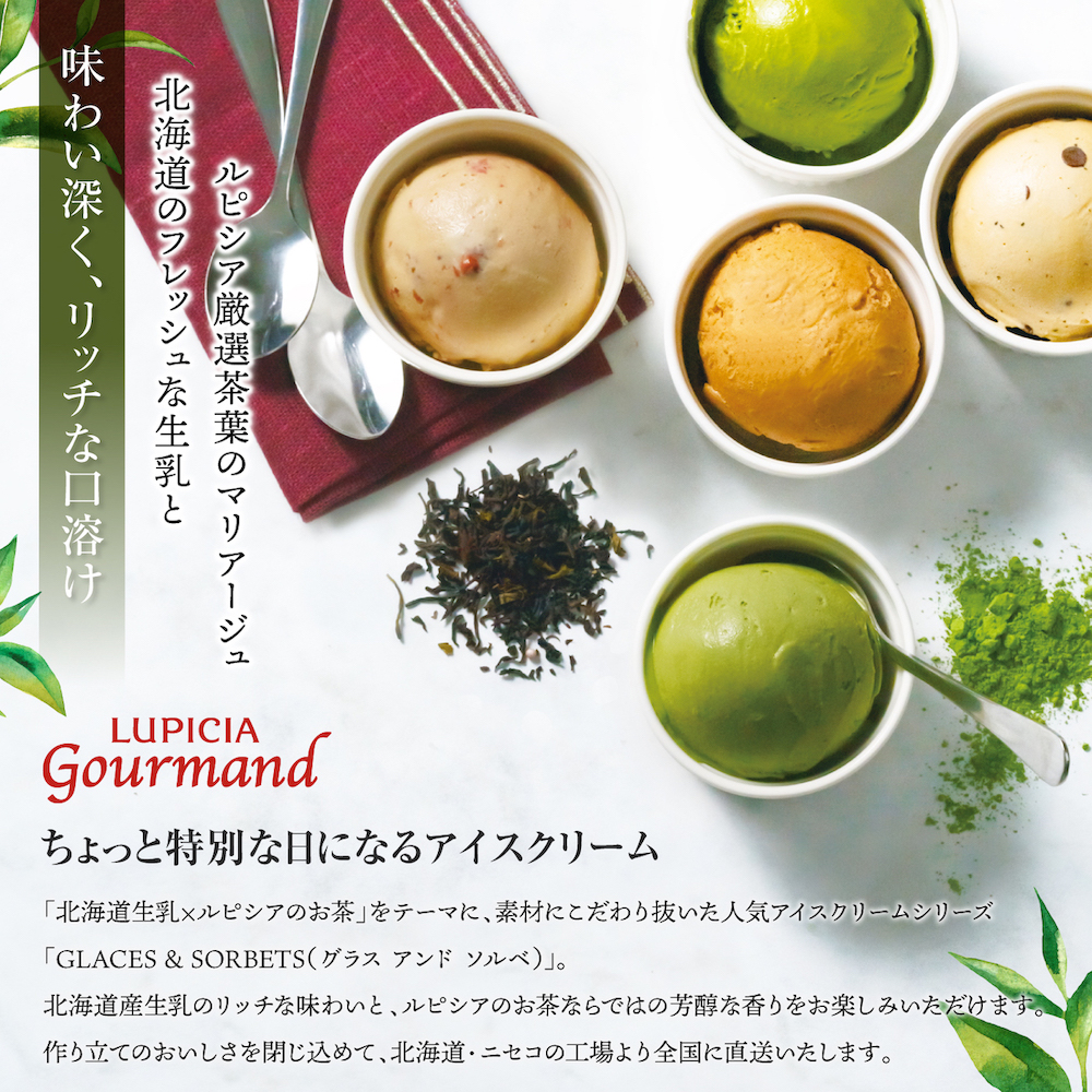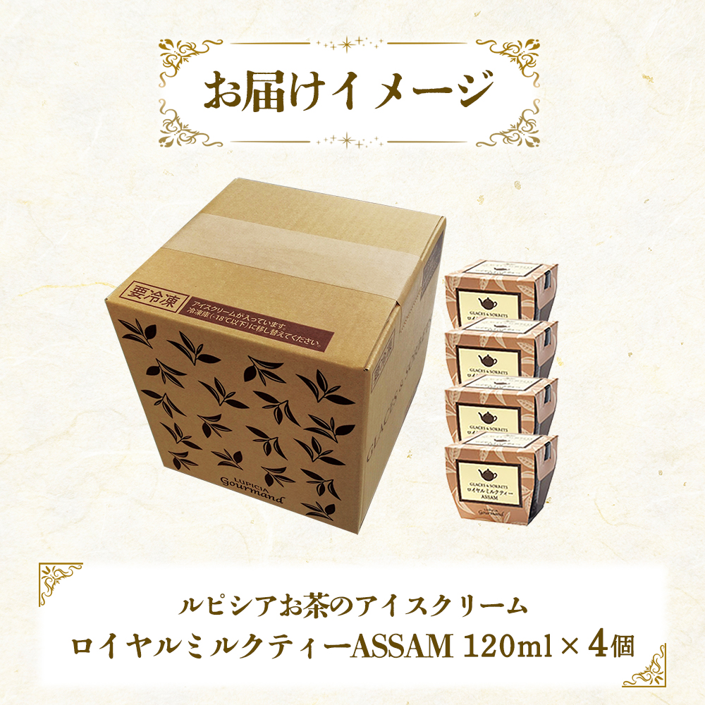 - 【北海道の生乳×ルピシアのお茶 アイス】グラス&ソルベ(ロイヤルミルクティー ASSAM)4個セット【06144】