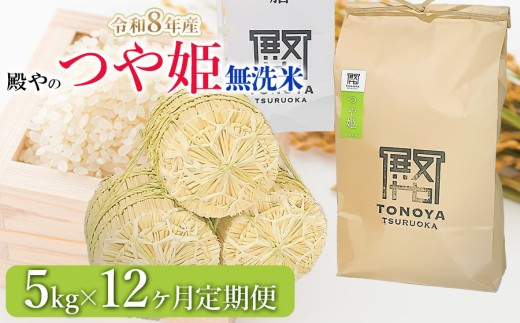 - 【令和8年産先行予約】【定期便12ヶ月】殿やの特別栽培米「つや姫」無洗米 5kg×12ヶ月 山形県鶴岡市産 K-845