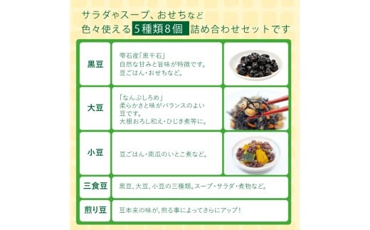 - ふっくらこ豆 5種類セット 計8袋 【雫石創作農園】 / 豆 まめ 蒸し豆 炒り豆 5種 セット 黒豆 大豆 小豆 インゲン豆 蒸し豆 お豆 ビーンズ 食品 調理 料理 加工品 簡単 時短 豆ご飯 おせち おせち料理 スープ サラダ 煮物 和食 人気 東北 岩手県 雫石町 おすすめ おススメ
