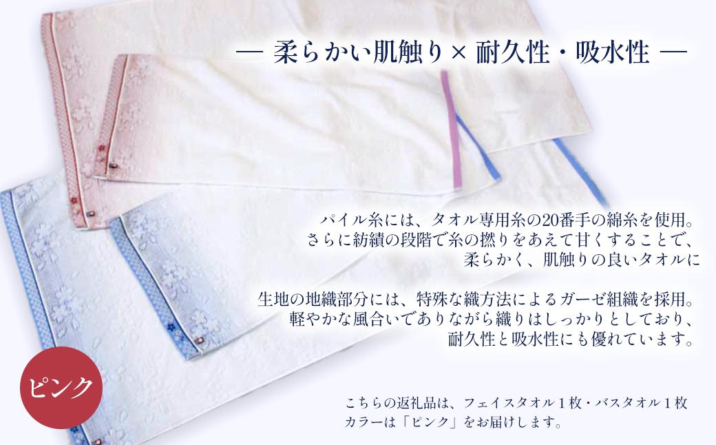 今治タオルブランド認定品 なごみね桜 フェイスタオル1枚・バスタオル1枚(ピンク柄) | タオル 今治タオル 愛媛県 西条市