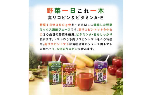 - カゴメ 野菜一日これ一本 超濃縮 高リコピン&ビタミンA・E 125ml 紙パック 72本入 (野菜ジュース) 紙パック 野菜ジュース 濃縮ジュース 名水仕込 無添加 これ1本 野菜不足 350g 30品目 健康志向 飲料 健康食品 防災