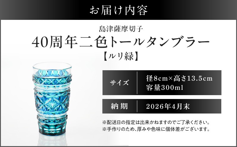 【期間限定】島津薩摩切子 40周年二色トールタンブラー(ルリ緑) K010-044_02