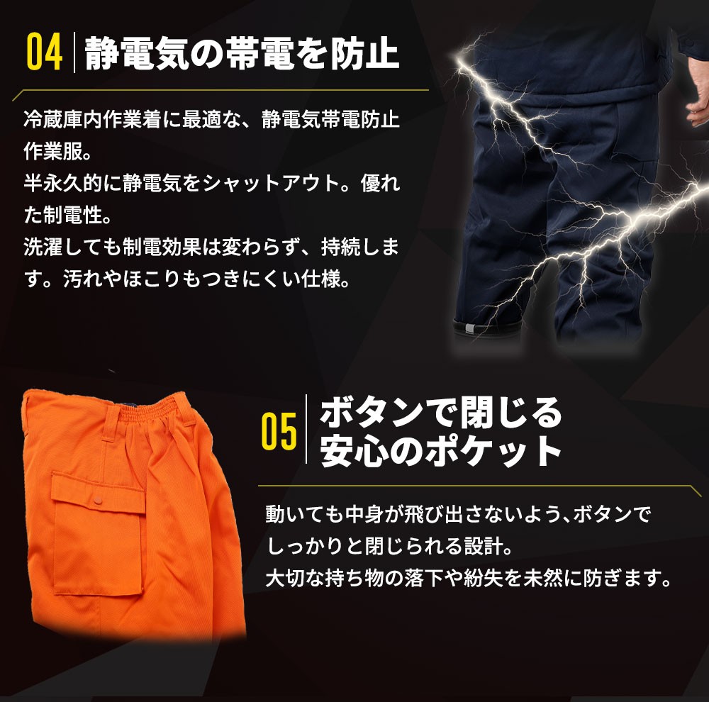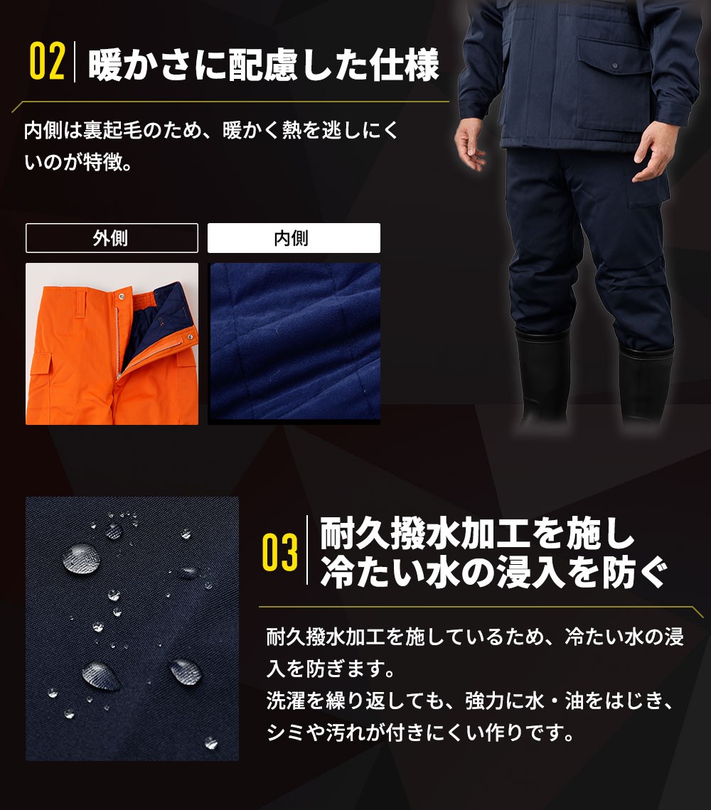 - 【-30℃対応】冷凍倉庫用防寒ズボンS7380(オレンジ) / ロングセラー商品 中綿シンサレート 保温性 起毛 着心地 広島県 No.1031