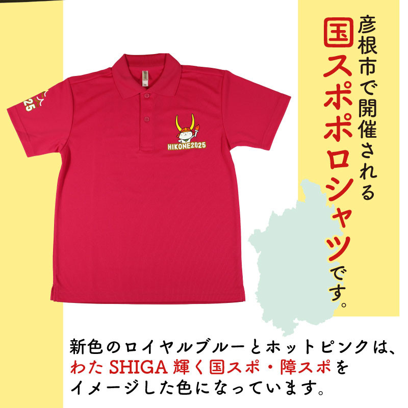 国スポ 2025 ポロシャツ ホットピンク SS S M L LL 3L 4L 5L 半袖 Tシャツ ひこにゃん ロゴ入り 滋賀 彦根