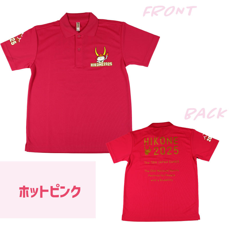 - 国スポ 2025 ポロシャツ ホットピンク SS S M L LL 3L 4L 5L 半袖 Tシャツ ひこにゃん ロゴ入り 滋賀 彦根