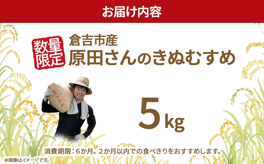 【在庫限定】令和7年産米 原田さんのきぬむすめ 5kg (原田農園)数量限定 お米 米 こめ コメ 白米 きぬむすめ ブランド米 鳥取県 倉吉市