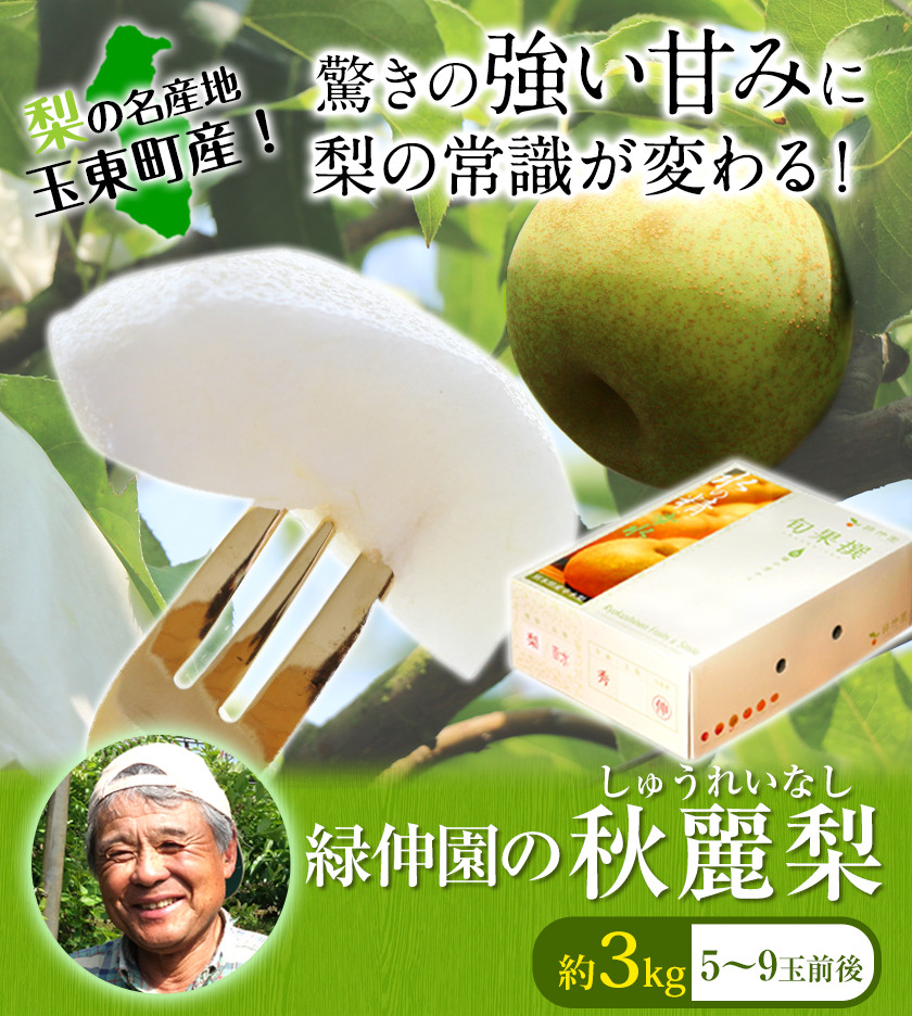 『緑伸園』の秋麗梨 期間限定 たっぷり約3kg 5~9玉前後 《8月上旬-8月下旬頃出荷》 なし 秋麗 果物 スイーツ フルーツ デザート スムージーにも 熊本県玉東町産