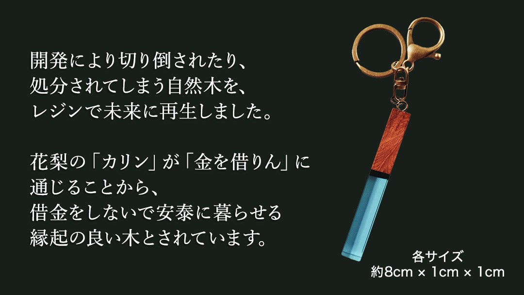 【 選べる 色合い 】 花梨 ( カリン )の木を使用したストレート型レジン キーホルダー 《空色/葡萄色/エメラルドグリーン/夕焼け/ディープブルー/きらめきディープブルー》 金運 商売繁盛 縁起物 大工 建築家 職人 天然木材 手作り 工芸品 民芸品 ストラップ 雑貨 小物 アクセサリー [CM020sa00]