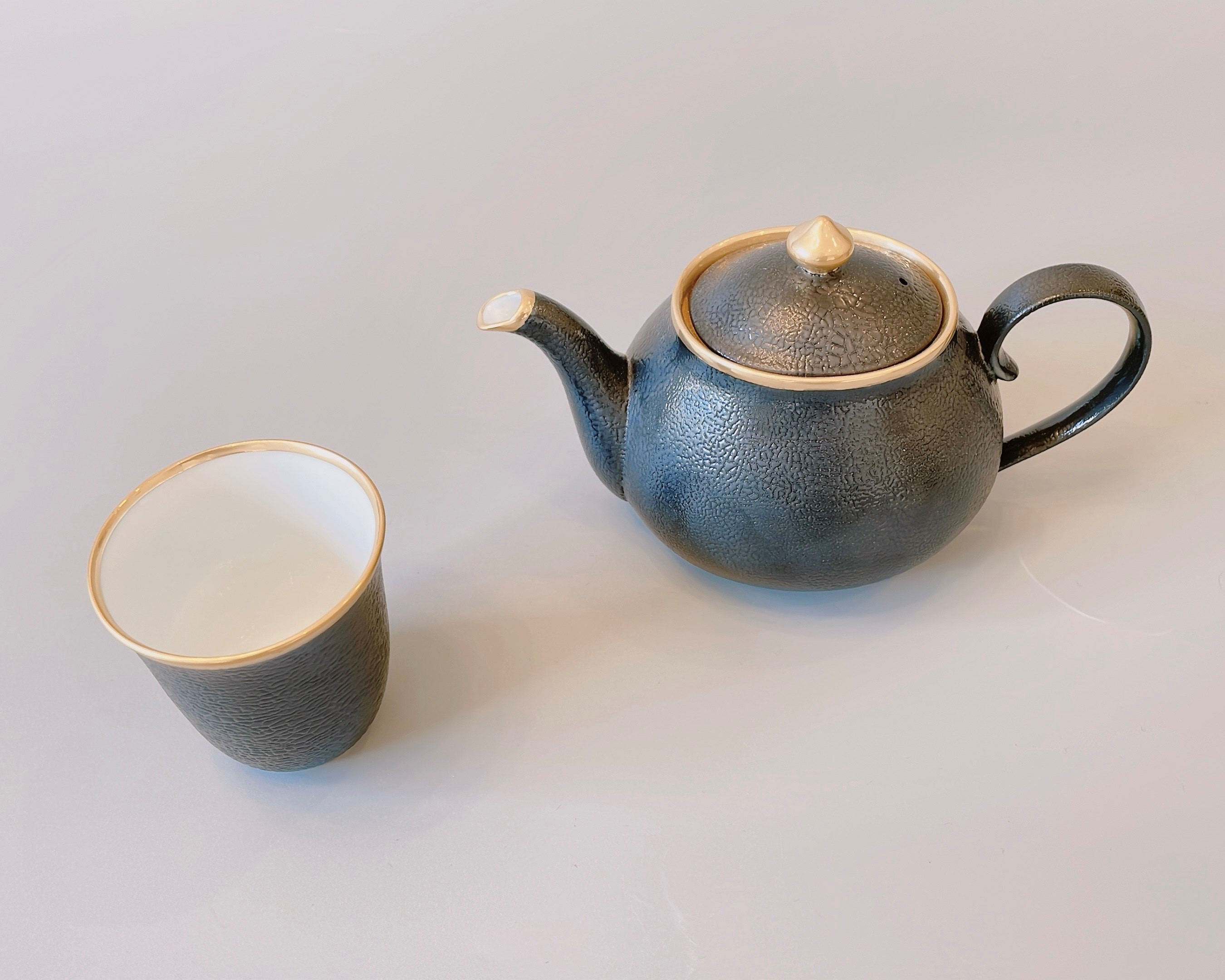- 【セット】【伊万里焼】キュイールデザイン 楕円ポット1&反煎茶1