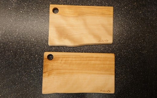 - 樺の小さなカッティングボード無垢材バターナイフ(右利き用)のセット(スクエアタイプ耳付き・大) 75P7312 / 東北 秋田 大館 生活雑貨 雑貨 木工品 キッチン用品 カッティングボード まな板 バターナイフ