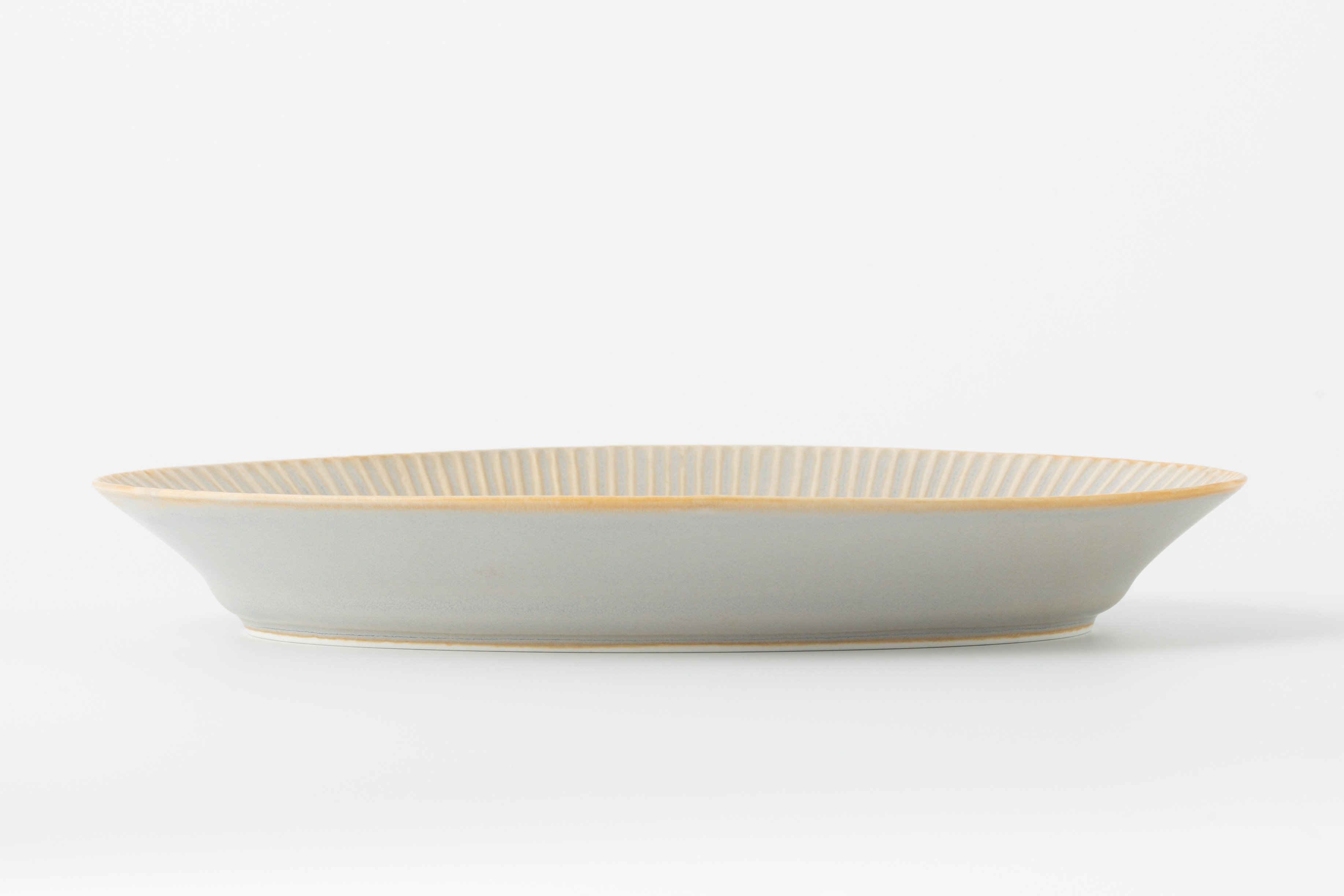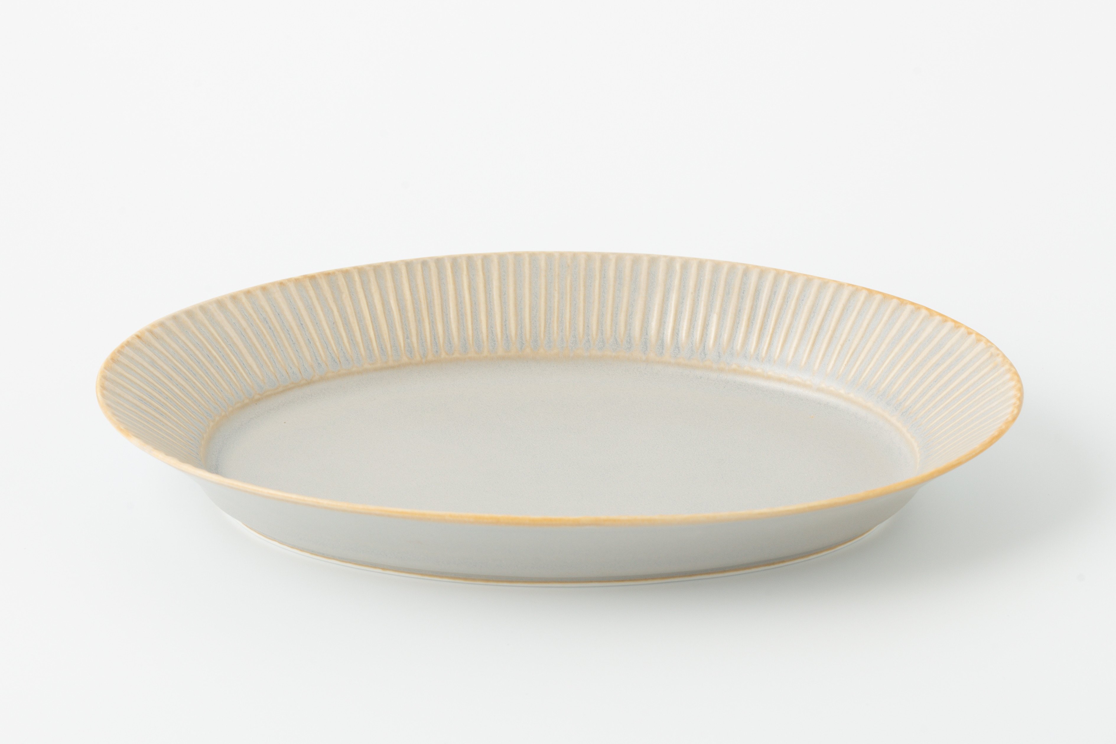 有田焼 シャーベットグレー しのぎリムオーバル皿(L) ヤマト陶磁器