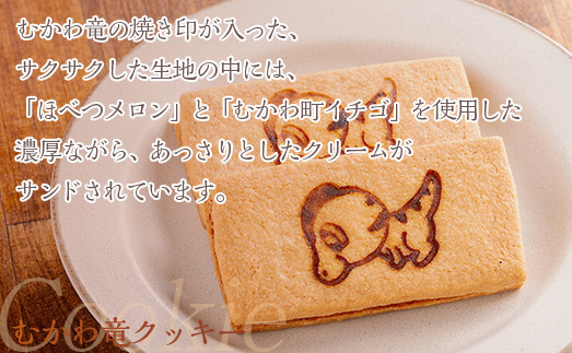 北海道むかわ町 むかわ竜クッキー イチゴクリーム(4個)&メロンクリーム(4個)計8個食べ比べセット 【 クッキー 洋菓子 イチゴ メロン むかわ竜 カムイサウルス 】 MKWQ003