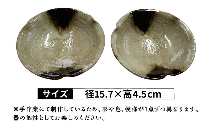 - 【つつえ窯】朝鮮唐津 掛け分け 輪花皿 2枚組 [UAJ028]
