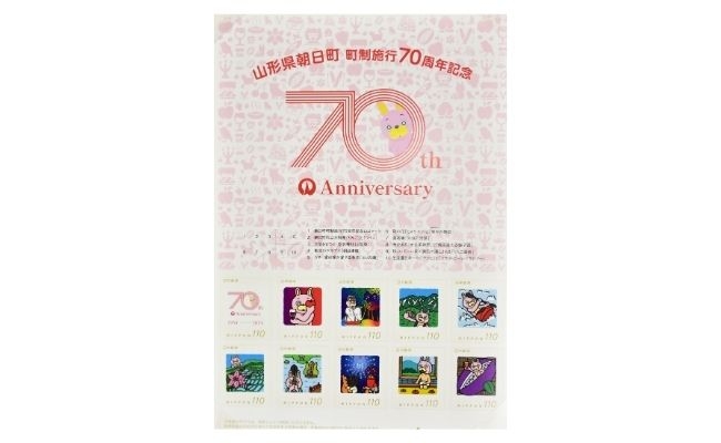 桃色ウサヒ 切手 シート フレーム切手 1シート(110円×10枚)山形県 朝日町 町制施行70周年 記念 送料無料