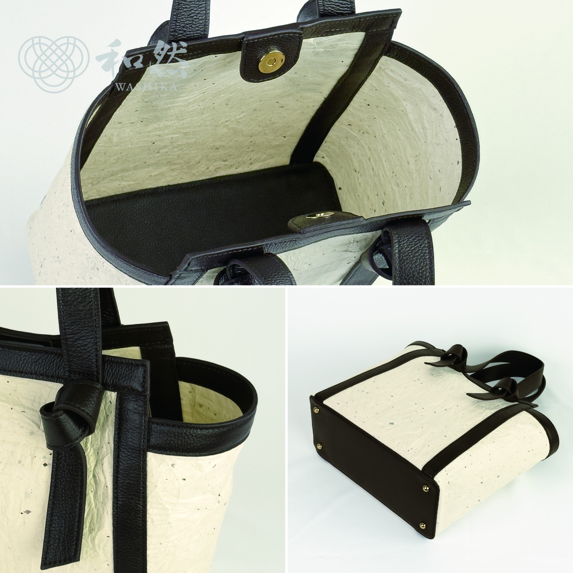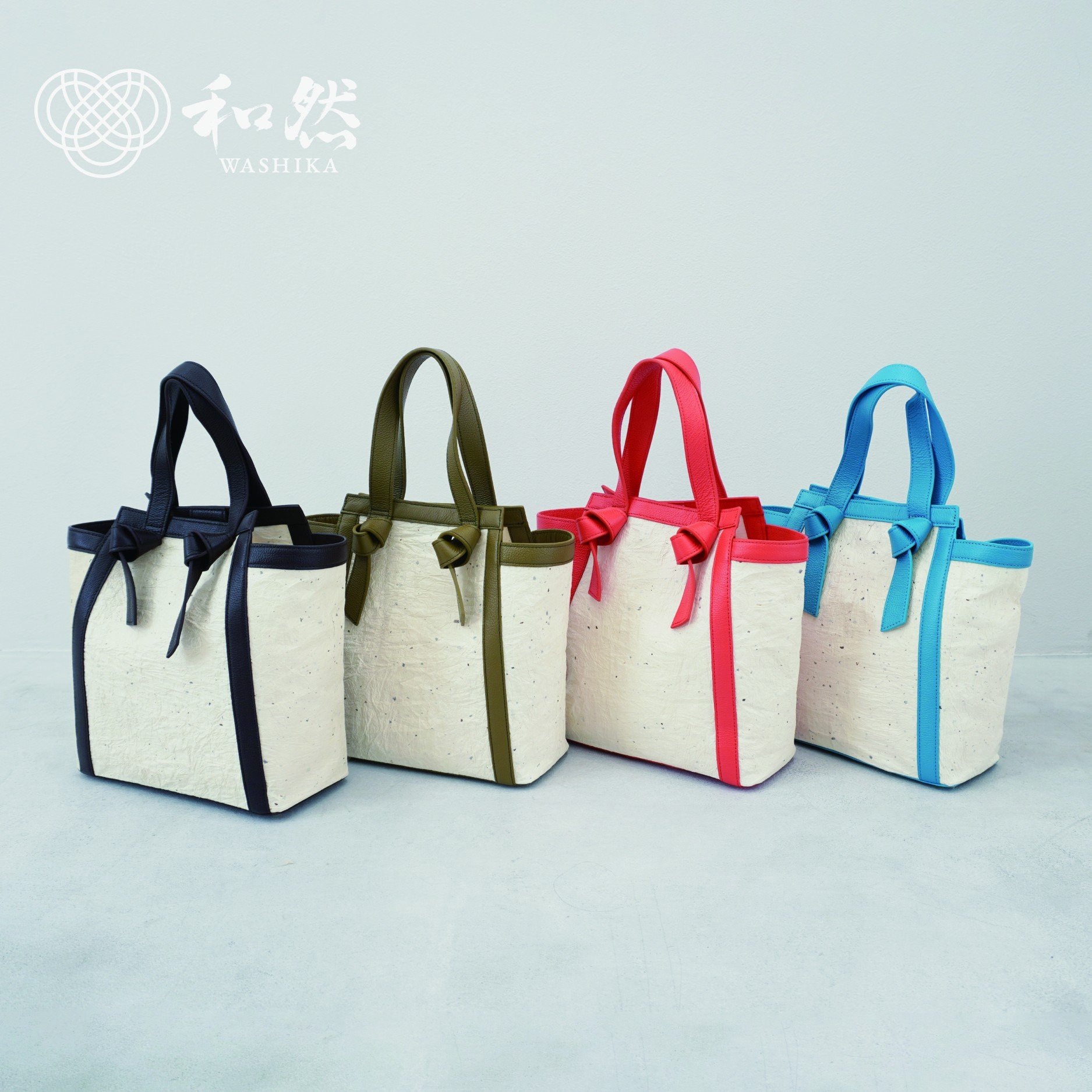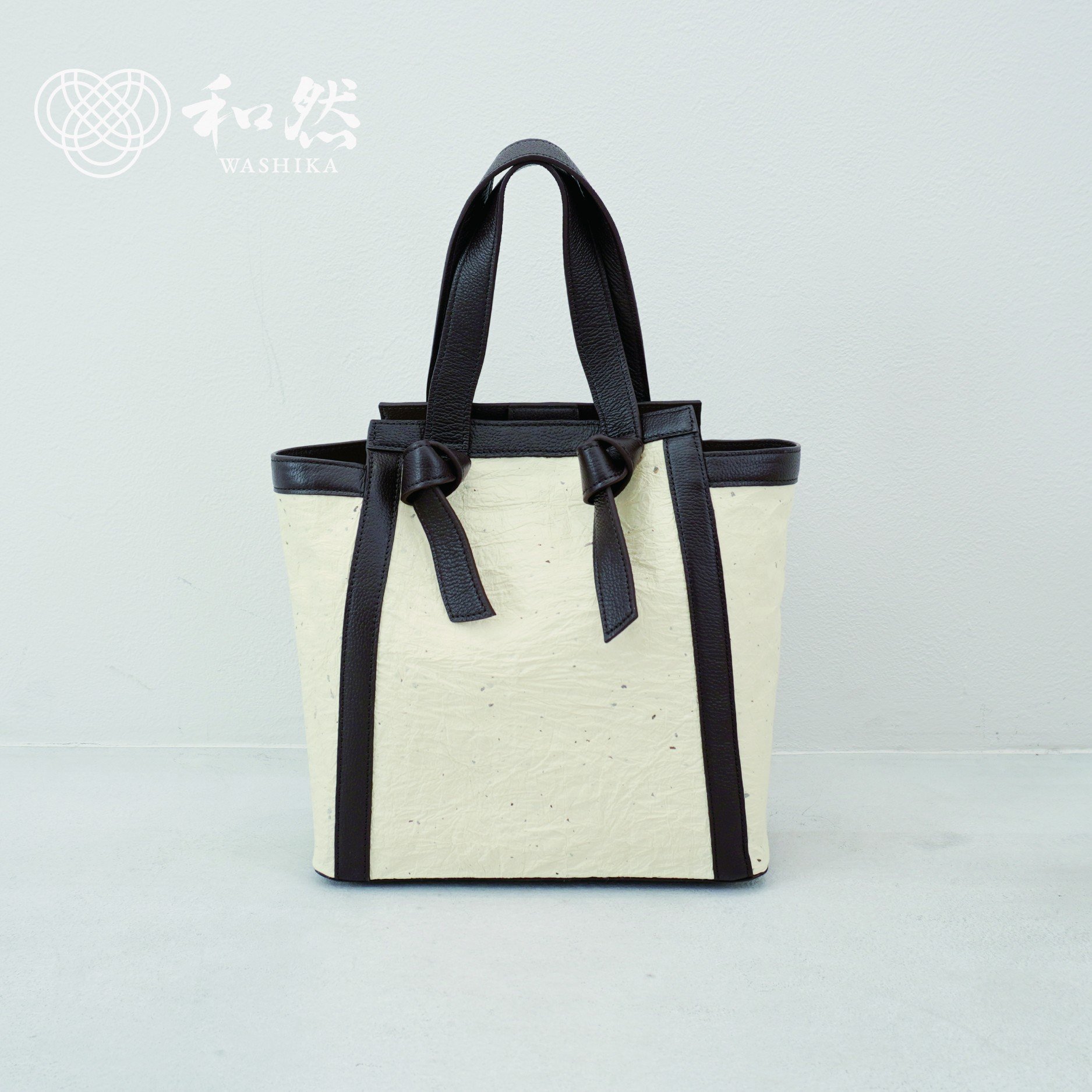 - ≪選べるカラー≫【和然WASHIKA】レザー ノット ハンドル バッグ 美濃 の手漉き 和紙 × 本革 zakka 暁 カバン かばん 鞄 バッグ ファッション レディース 雑貨 和雑貨 TG 岐阜県 大垣市