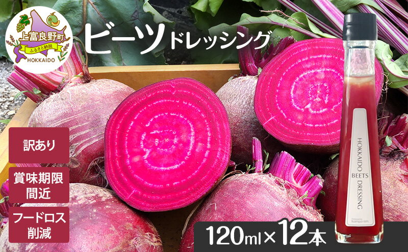 - 【ふるさと納税】訳あり 賞味期限間近 ビーツ ドレッシング 120ml 1ダース ( 12本 ) フードロス削減 生産者応援 北海道 上富良野町 かんのファーム お届け:2026年2月~3月初旬まで