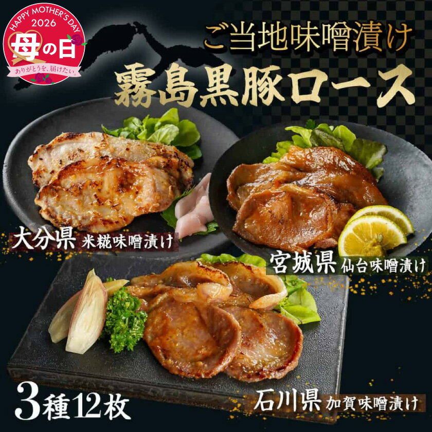 - 【ふるさと納税】【母の日】霧島黒豚ロースご当地味噌漬け3種12枚セット≪5月7日〜10日お届け≫ - 黒豚ロース 米糀味噌漬け 仙台味噌漬け 加賀味噌漬け 3種 12枚 母の日 ギフト プレゼント 贈答用 送料無料 AA-2812-MG 【宮崎県都城市は2年連続ふるさと納税日本一!】