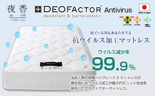 マットレス (シングル・ホワイト・ソフト) ポケットコイル 抗ウイルス加工 衛生タイプ ベッド 寝具 インテリア 家具 国産 夜香 ハイグレード2 ポケットコイルマットレス デオファクター deofactor 圧縮梱包 制菌加工 抗かび加工 両面仕様_CH041_057