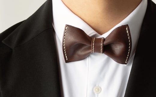 - 【ブラウン】本格レザー蝶ネクタイ【Kazu Gee Factory】[OBG001-3]