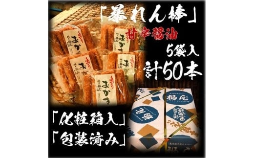 - 暴れん棒(堅めな食感の揚げおかき・甘辛醤油)50本 醤油の町「銚子・福屋」の手作りおかき