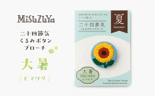二十四節気くるみボタンブローチ (種類:大暑〈ヒマワリ〉)