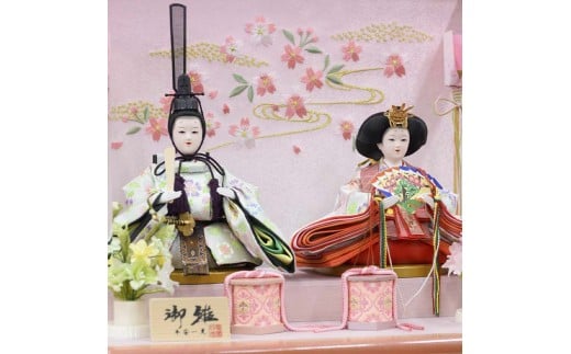 - 【雛人形】愛 柳(約9~11㎝)二人 アクリルケース ピンク木目