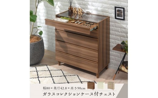 - 【完成品でお届け】ガラスコレクションケース付チェスト(ホワイト)チェスト 脚付き 引き出し 収納 5段 アクセサリー収納 衣類収納 木製 ガラス天板 棚 ディスプレイ タンス かわいい コンパクト LKANCT001171-0-WH