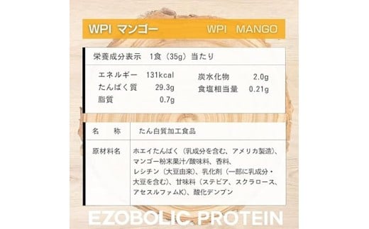 【WPIマンゴー風味】 EZOBOLIC プロテイン 3kg WPI100%