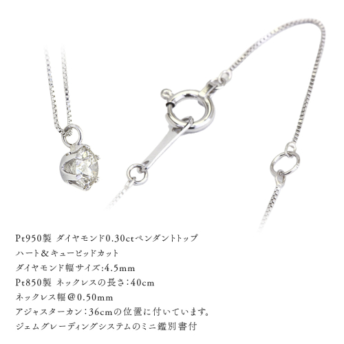 Pt 950 製 ダイヤモンド ネックレス 6本爪 0.30ct ハート&キューピッド カット ペンダント 普段使い 結婚式 成人祝い 結婚祝い お祝い 入学式 卒業式 ギフト 記念 贈り物 贈答用 アクセサリー ジュエリー ジュエリーマーノ 桜川市 [AH171sa]