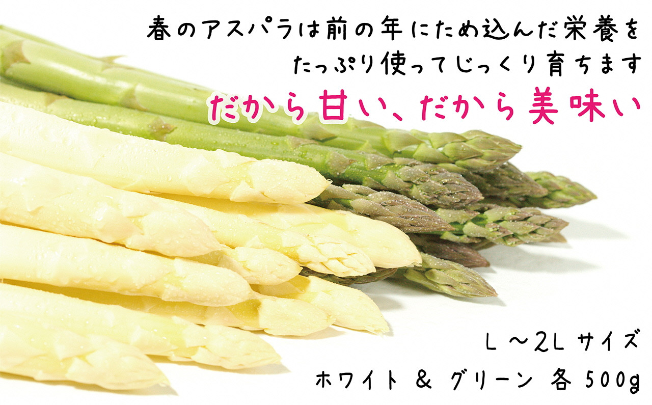 - 【早期予約・数量限定 4月~5月初旬出荷予定】2026年 北海道江差町産 「春」のアスパラ2色食べくらべセット 計1kg ホワイトアスパラ 500g & グリーンアスパラ 500g L~2Lサイズ 朝採り 農家直送 みずみずしい 新鮮 アスパラガス 甘い