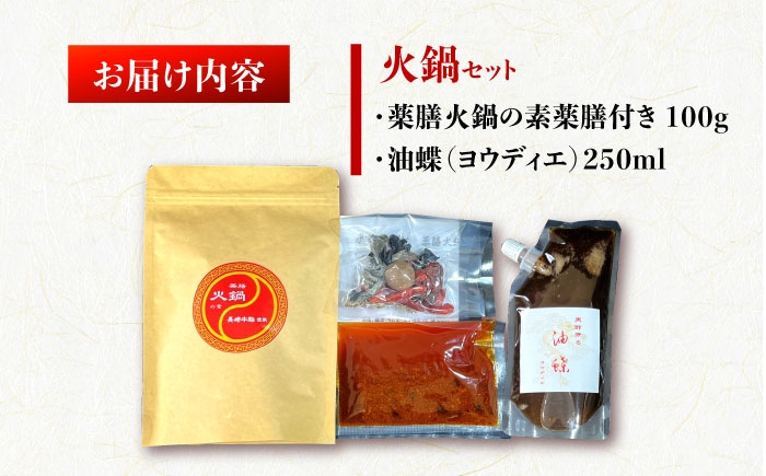 長崎牛脂使用 薬膳火鍋の素(麻辣スープの素)※薬膳付き・油蝶(ヨウディエ・つけたれ)セット 長崎県/ダイニング味遊 [42ACAG120]