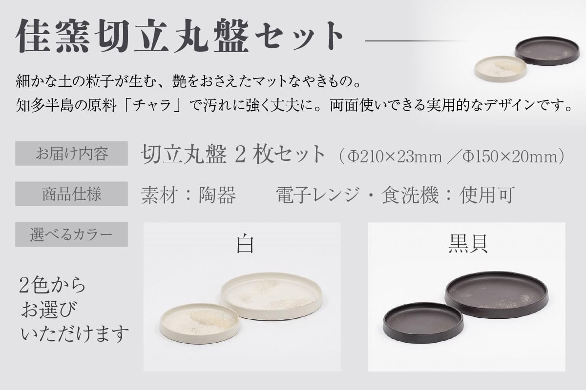 佳窯 切立丸盤セット Φ21cm、Φ15.0cm 常滑焼 陶器 食器 皿 丸皿 リバーシブル 電子レンジ可 食洗機使用可 2枚セット シンプル マット 贈り物 プレゼント 日本製 キッチン キッチン用品 チャラ おしゃれ INAX 日本六古窯 愛知県 常滑市