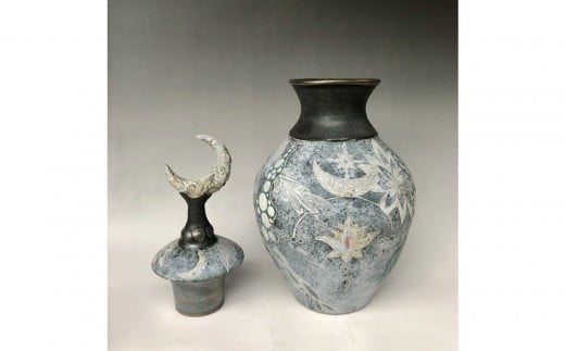 - 益子焼 蓋付き花器「月が見える」 | 栃木県 伝統工芸品 美術品 1点限定品 一点物 陶器 陶芸 作家