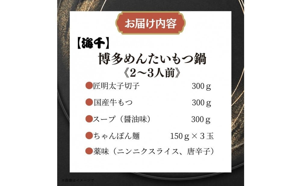 - 【海千】もつ鍋(醤油味)2-3人前セット~トッピング用に博多明太子切れ子300g付き~