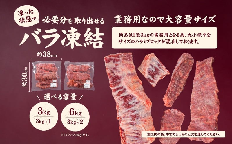 牛ハラミ ブロック 3kg / 6kg タンブリング加工 牛ハラミ はらみ 牛肉 肉 個包装 冷凍 焼肉 焼き肉 BBQ バーベキュー ステーキ 丼物 簡単調理 炒め物 家庭用 業務用 人気 お取り寄せ 愛媛県 松山市