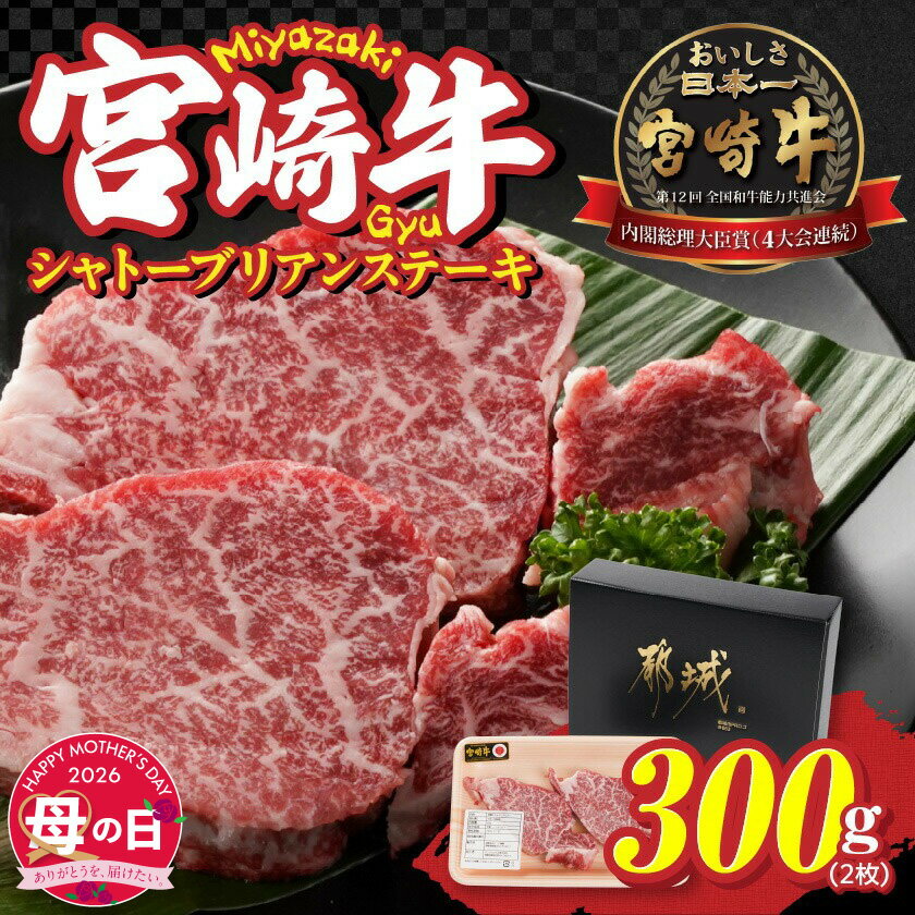 - 【ふるさと納税】【母の日】宮崎牛シャトーブリアンステーキ2枚(合計300g)≪5月7日〜10日お届け≫ - 宮崎牛 ステーキ 2枚×1パック 合計 300g A4/A5 牛肉 母の日 ギフト プレゼント 贈答用 送料無料 AG-N301-MG 【宮崎県都城市は2年連続ふるさと納税日本一!】