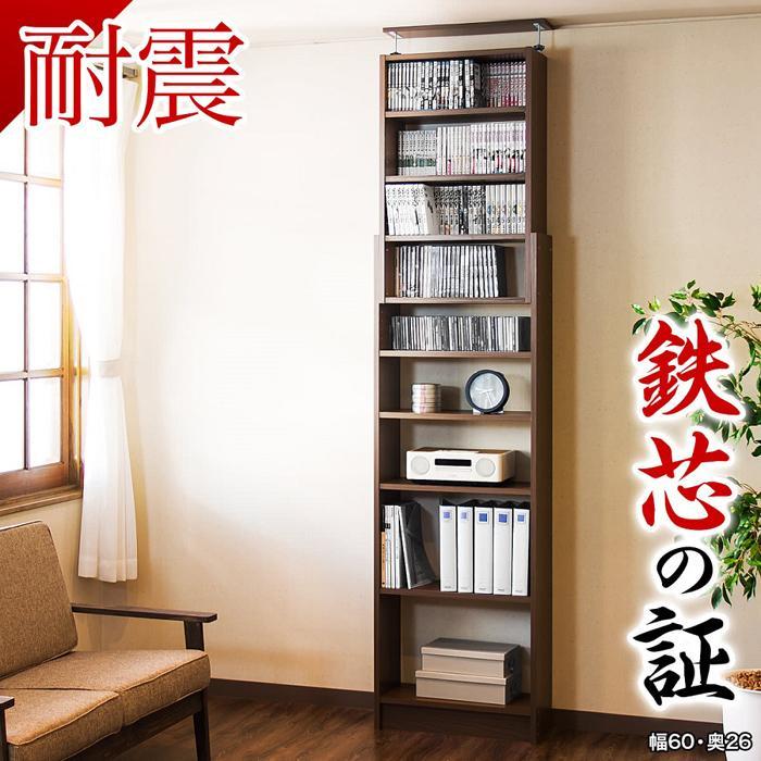 - 【ふるさと納税】突っ張り耐震本棚 幅60 奥行26 高さ190~260 ウォールナット aku100450196 | ふるさと納税 楽天 家具 木製 収納 棚 子供部屋 リビング 書斎 絵本棚 子ども シンプル デザイン 文庫 書棚 教科書 新生活 引っ越し 耐震 ブラウン